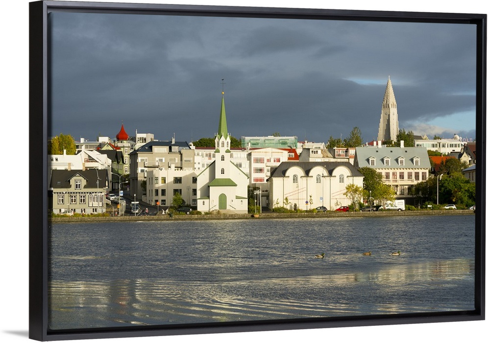 <p>View of the Historic Centre and Lake Tjornin, Reykjavik, Iceland, Polar Regions</p>