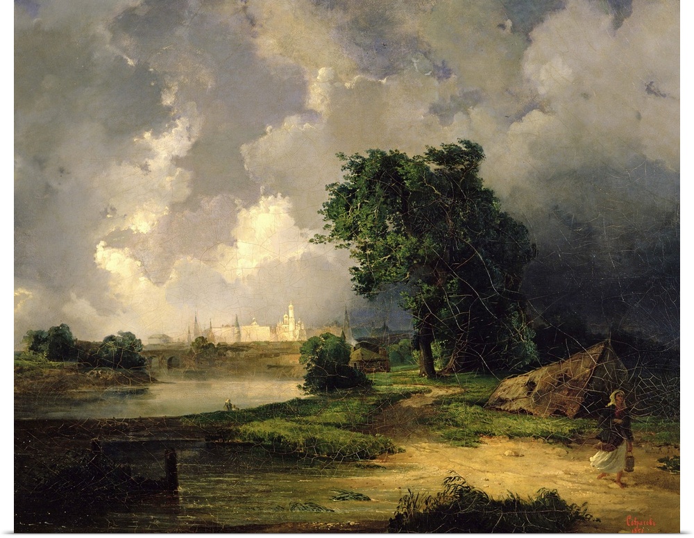 <p>BAL40911 View of the Kremlin in Bad Weather, 1851 (oil on canvas); by Savrasov, Aleksei Kondratevich (1830-97); 67x90.5 cm; Tretyakov Gallery, Moscow, Russia; Russian, out of copyright</p>