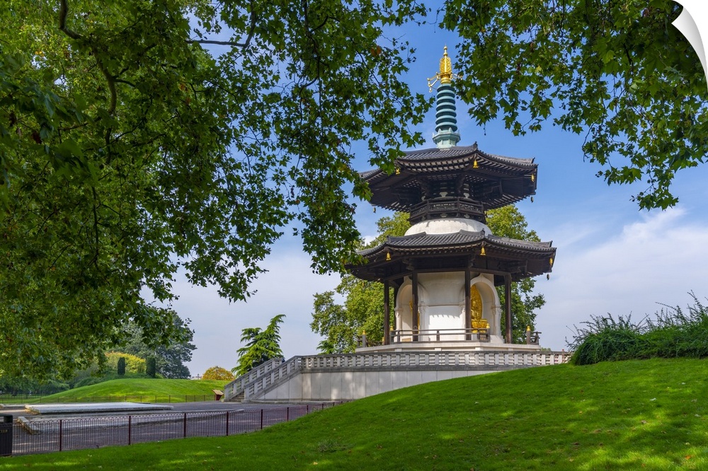 <p>View of The London Peace Pagoda, Battersea Park, Nine Elms Lane, London, England, United Kingdom, Europe</p>