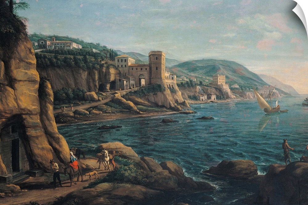 <p>View of the Neapolitan Coast, by Gaspar Van Wittel known as Gaspare Vanvitelli, 1725, 18th Century, oil on canvas, cm 109 x 156 - Italy, Lombardy, Milan, Banca Popolare Commercio e Industria Art Collections. All sea coast coastline Naples rocks cliffs cra</p>