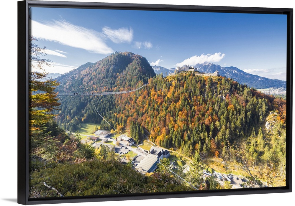 <p>View of the old Ehrenberg Castle surrounded by colorful woods and suspension bridge, Highline 179, Reutte, Austria</p>