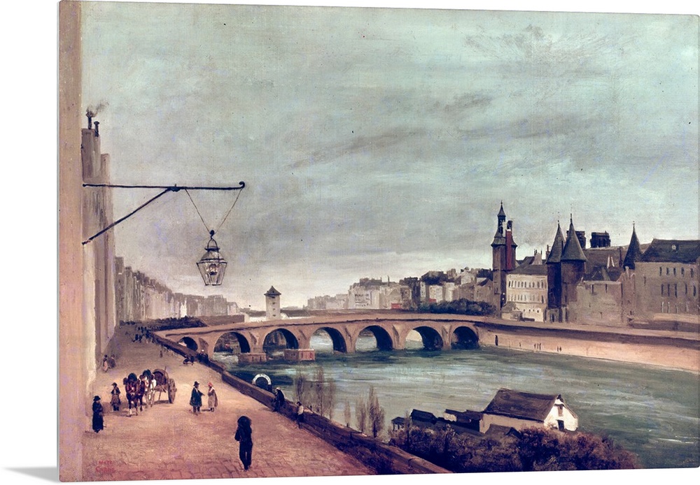 <p>XIR220937 View of the Pont au Change from Quai de Gesvres, Summer 1830 (oil on canvas) by Corot, Jean Baptiste Camille (1796-1875); 50x72 cm; Private Collection; Giraudon; French, out of copyright</p>