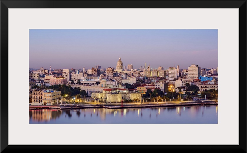 <p>View over Castle of the Royal Force and Habana Vieja towards El Capitolio at dawn, Havana, La Habana Province, Cuba</p>