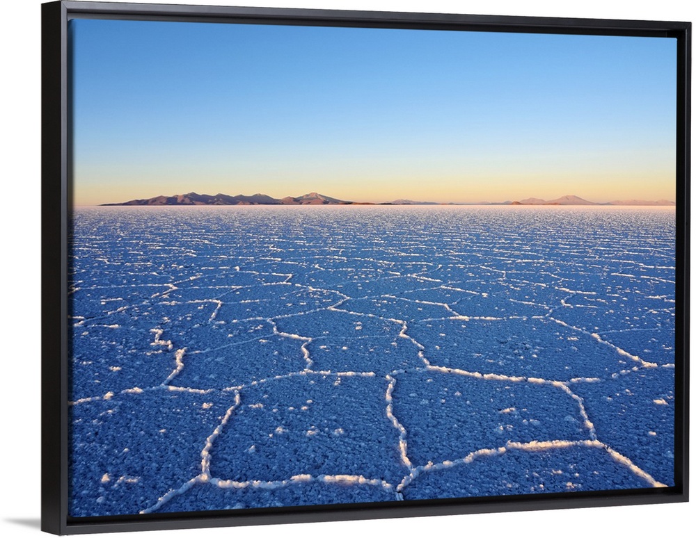 <p>Bolivia, Potosi Department, Daniel Campos Province, View of the Salar de Uyuni, the largest salt flat in the world at sunrise.</p>