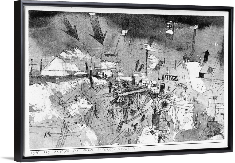 <p>View of the severely threatened city of Pintz, 1915 (no 187) (originally pen and w/c on paper on cardboard) by Klee, Paul (1879-1940)</p>