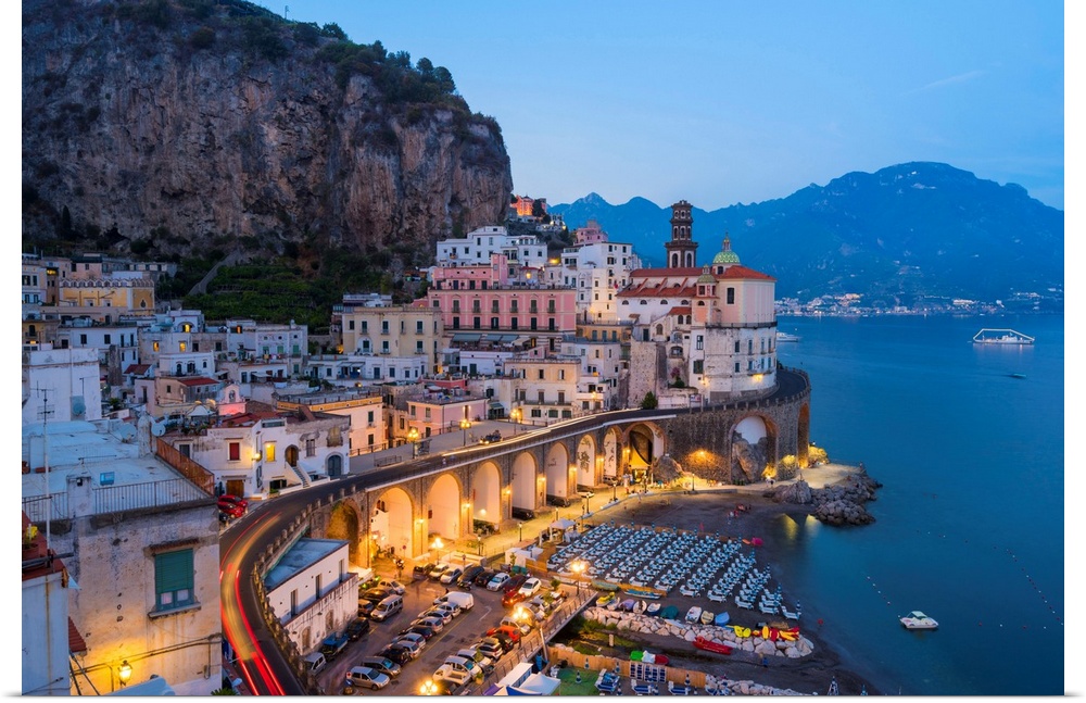 <p>Atrani, Amalfi Coast, Salerno Province, Campania, Italy-View Of The Small Village Of Atrani During The Blue Hour</p>