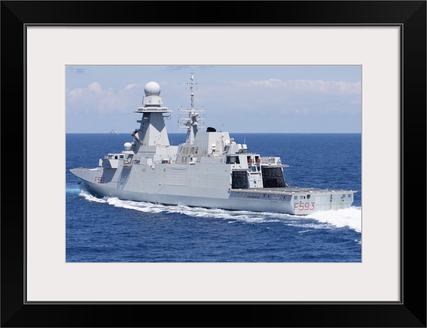 <p>View of the stern of Italian Navy frigate Carabiniere.</p>