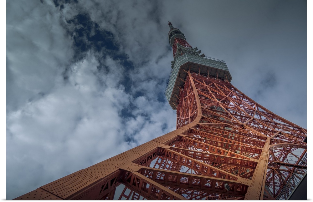 <p>View of Tokyo Tower from its base against cloudy sky, Shibakoen, Minato City, Tokyo, Honshu, Japan</p>