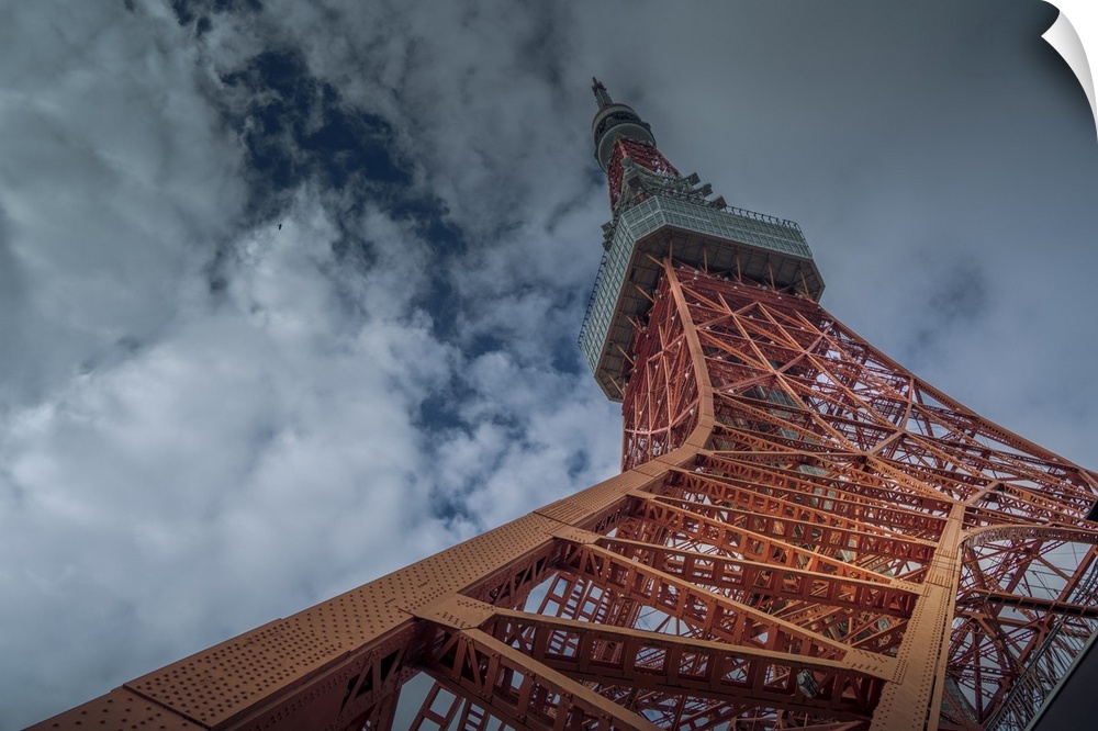 <p>View of Tokyo Tower from its base against cloudy sky, Shibakoen, Minato City, Tokyo, Honshu, Japan</p>