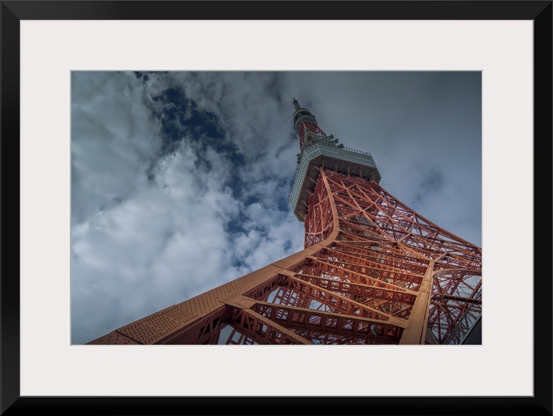 <p>View of Tokyo Tower from its base against cloudy sky, Shibakoen, Minato City, Tokyo, Honshu, Japan</p>