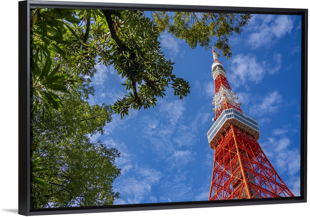 <p>View of Tokyo Tower from its base against blue sky, Shibakoen, Minato City, Tokyo, Honshu, Japan</p>