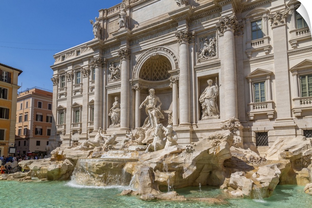 <p>View of Trevi Fountain in bright sunlight, Piazza di Trevi, UNESCO World Heritage Site, Rome, Lazio, Italy, Europe</p>