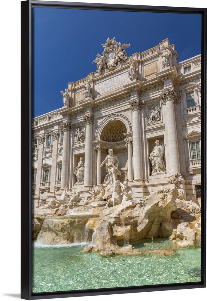 <p>View of Trevi Fountain in bright sunlight, Piazza di Trevi, UNESCO World Heritage Site, Rome, Lazio, Italy, Europe</p>