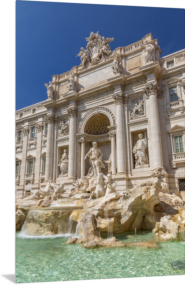 <p>View of Trevi Fountain in bright sunlight, Piazza di Trevi, UNESCO World Heritage Site, Rome, Lazio, Italy, Europe</p>
