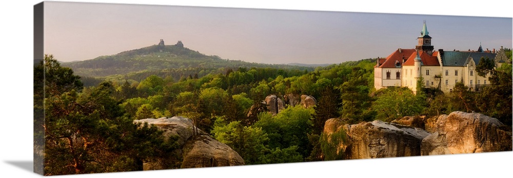 <p>View of trosky castle in a village, hruba skala, cesky raj national park, czech republic.</p>