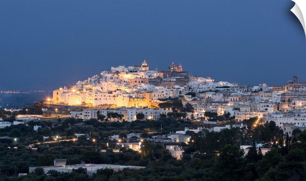 <p>View of typical architecture and white houses of the old medieval town at dusk, Ostuni, Province of Brindisi, Apulia, Italy</p>