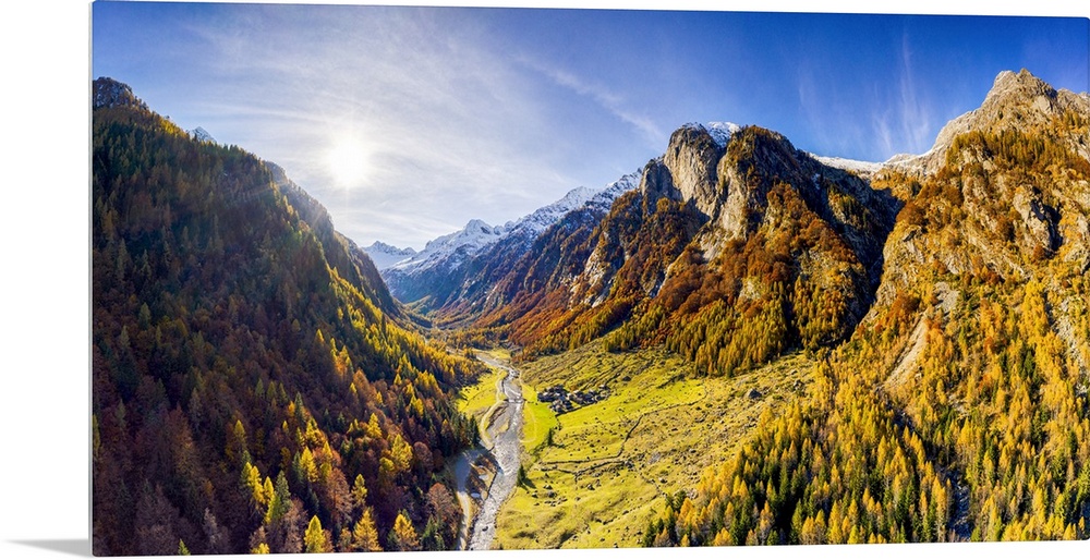 <p>Panoramic aerial view of Val Bodengo during autumn. Valchiavenna, Valtellina, Lombardy, Italy.</p>