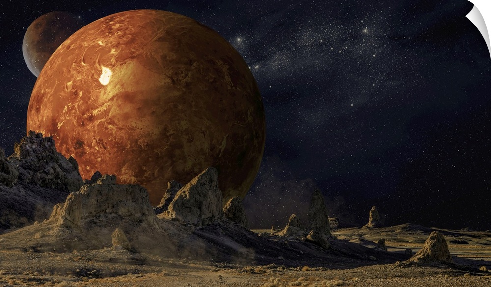 <p>View of Venus and moon from the surface of mars, a composite image.</p>