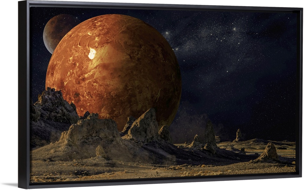 <p>View of Venus and moon from the surface of mars, a composite image.</p>