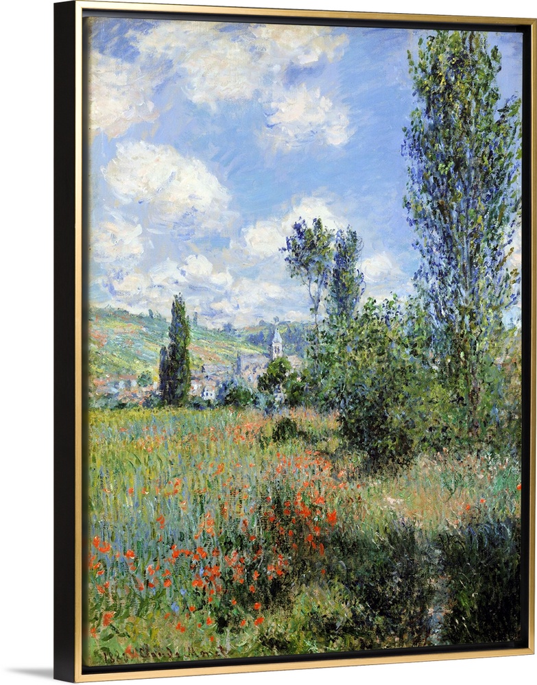 <p>The footpath winding through the poppy field at bottom right points the way toward the church tower at Vetheuil, the village northwest of Paris where Monet set up house in 1878. Although the landscape appears continuous, the artist painted this view from an island in the Seine River; the water is obscured by a stand of poplars. Monet depicted the area around Vetheuil extensively during the summer of 1880, creating a remarkably varied array of scenes. Three other examples may be found in the Metropolitan's collection.</p>
