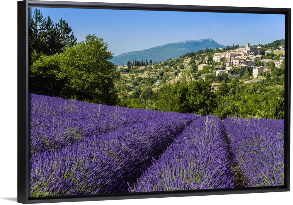 <p>View of village of Aurel with field of lavander in bloom, Provence, France.</p>