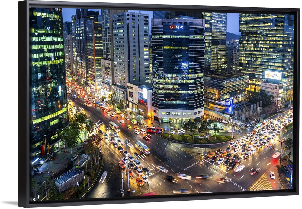 <p>View over busy Gangnam at dusk, Gangnam District, Seoul, South Korea.</p>