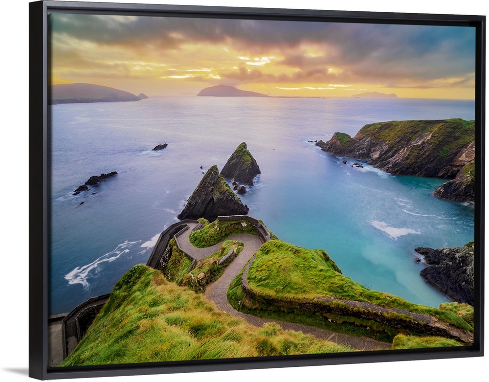 <p>View over Dunquin Pier towards Blasket Islands at dusk, Dingle Peninsula, County Kerry, Ireland</p>