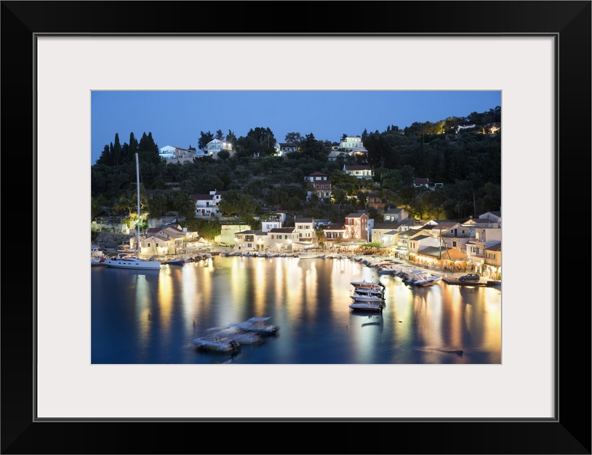 <p>View over harbour at night, Loggos, Paxos, Ionian Islands, Greek Islands, Greece, Europe</p>