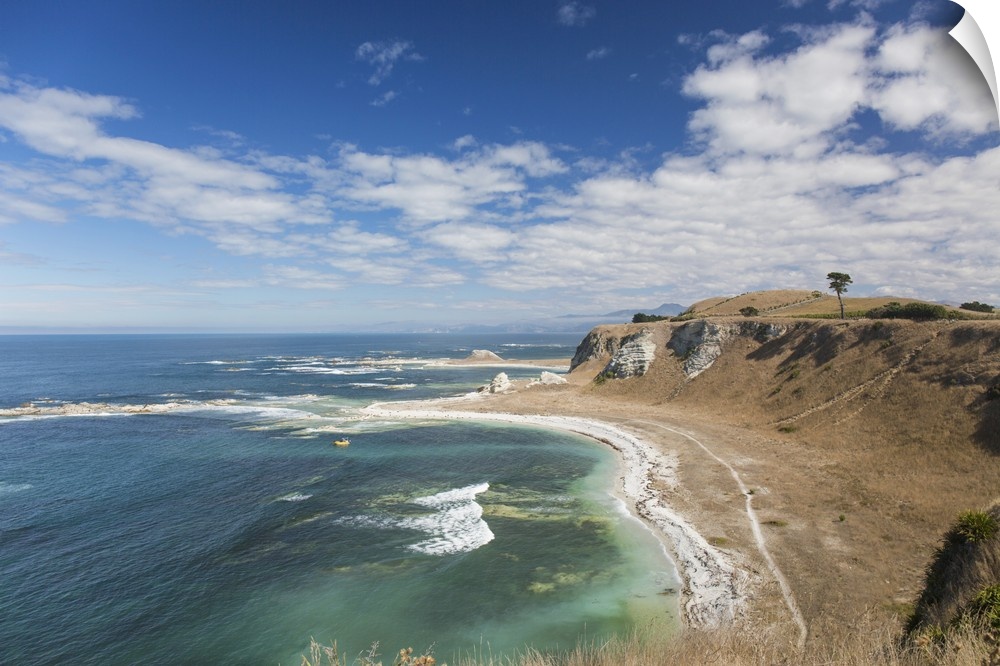 <p>View over the coastline of the Kaikoura Peninsula from the Kaikoura Peninsula Walkway, Kaikoura, Canterbury, South Island, New Zealand, Pacific</p>