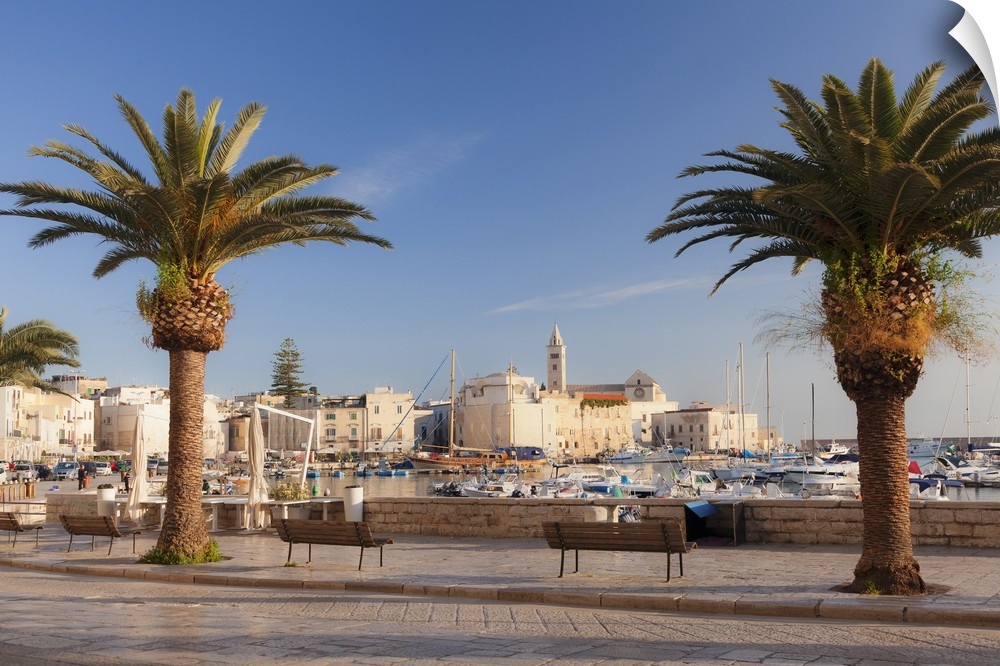 <p>View over the harbour to San Nicola Pellegrino cathedral, Trani, Le Murge, Barletta-Andria-Trani district, Puglia, Italy, Mediterranean, Europe</p>