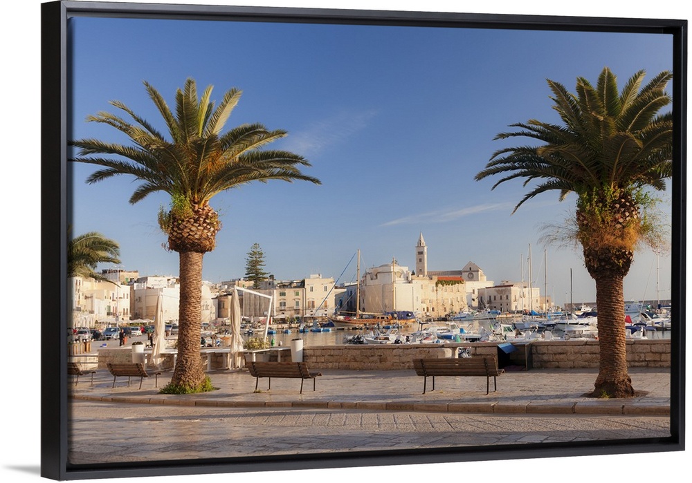 <p>View over the harbour to San Nicola Pellegrino cathedral, Trani, Le Murge, Barletta-Andria-Trani district, Puglia, Italy, Mediterranean, Europe</p>