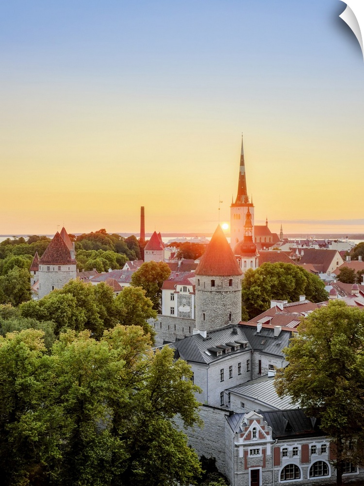 <p>View over the Old Town towards St. Olaf's Church at sunrise, Tallinn, Estonia</p>