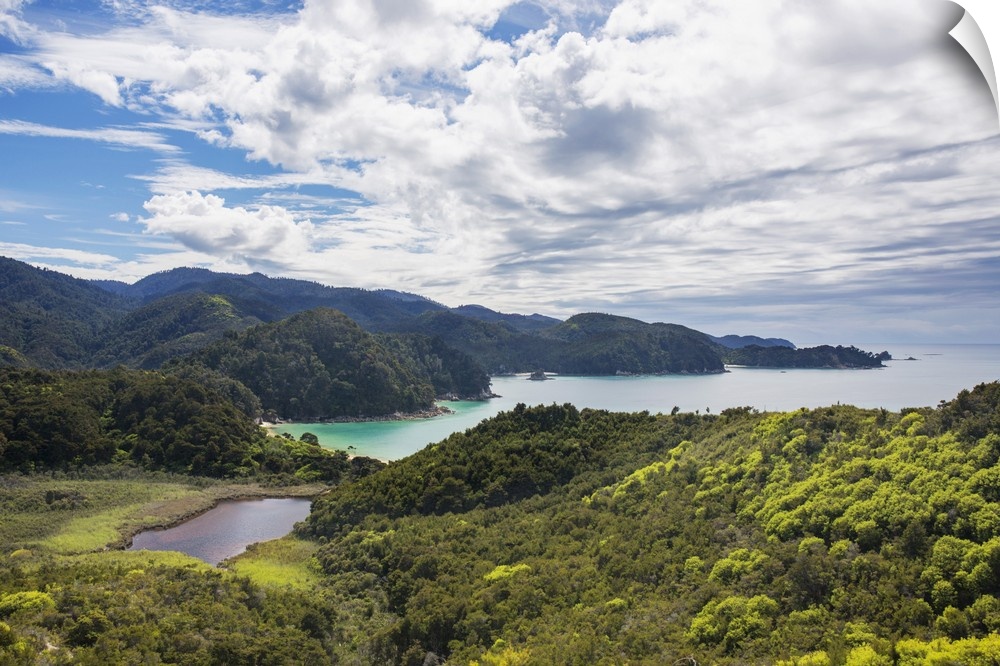 <p>View over Torrent Bay from the Abel Tasman Coast Track, Abel Tasman National Park, near Marahau, Tasman, South Island, New Zealand, Pacific</p>