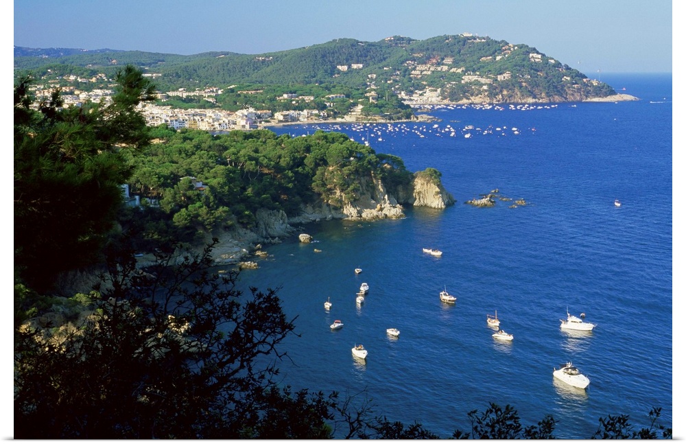 <p>View to the north along the coast from Cap Roig Botanical Gardens, Calella de Palafrugell, Costa Brava, Gerona, Cataluna, Spain</p>