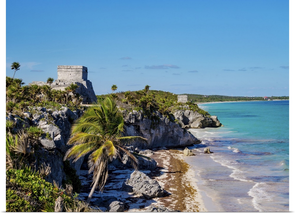 <p>View towards El Castillo and Temple of the God of Wind, Tulum Archeological Site, Quintana Roo State, Mexico</p>
