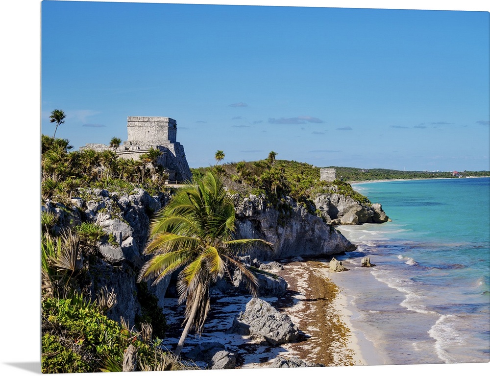 <p>View towards El Castillo and Temple of the God of Wind, Tulum Archeological Site, Quintana Roo State, Mexico</p>
