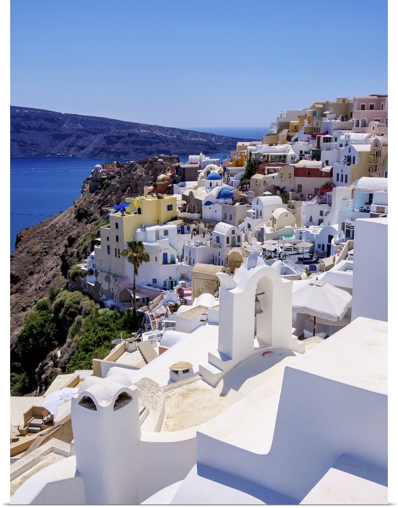 <p>View towards the castle, Oia Village, Santorini (Thira) Island, Cyclades, Greek Islands, Greece, Europe</p>
