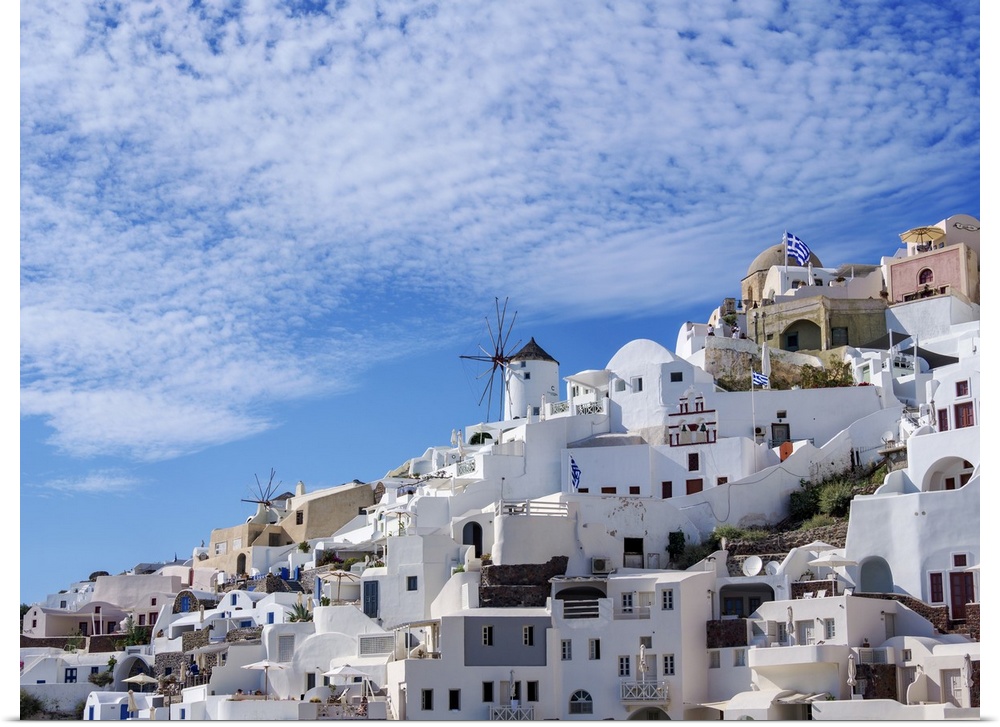 <p>View towards the windmills, Oia Village, Santorini (Thira) Island, Cyclades, Greek Islands, Greece, Europe</p>