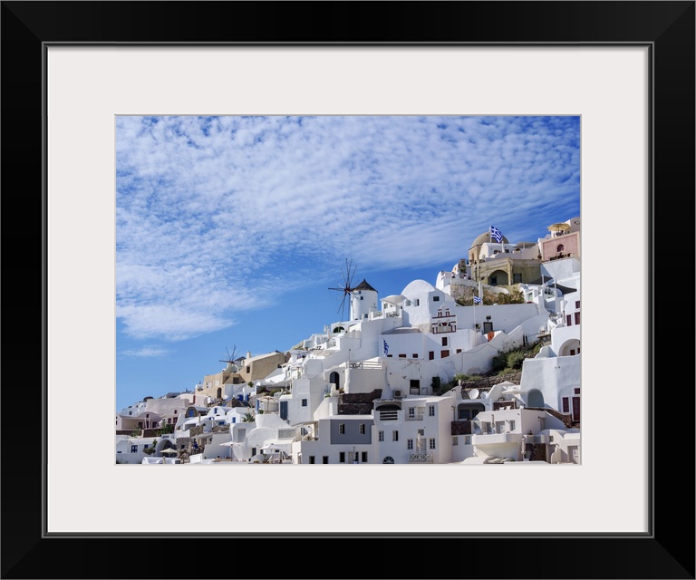 <p>View towards the windmills, Oia Village, Santorini (Thira) Island, Cyclades, Greek Islands, Greece, Europe</p>