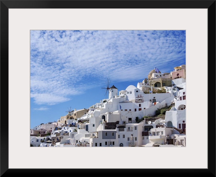 <p>View towards the windmills, Oia Village, Santorini (Thira) Island, Cyclades, Greek Islands, Greece, Europe</p>
