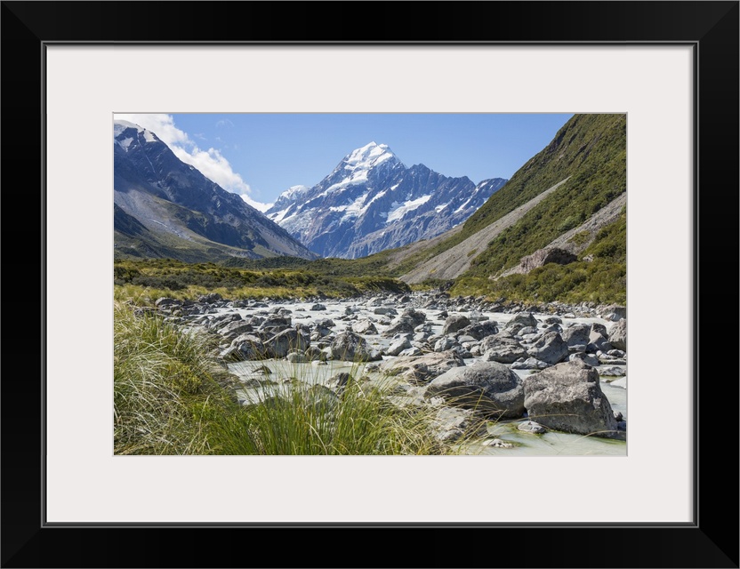 <p>View up the Hooker Valley to Aoraki (Mount Cook), Aoraki (Mount Cook) National Park, UNESCO World Heritage Site, Mackenzie district, Canterbury, South Island, New Zealand, Pacific</p>