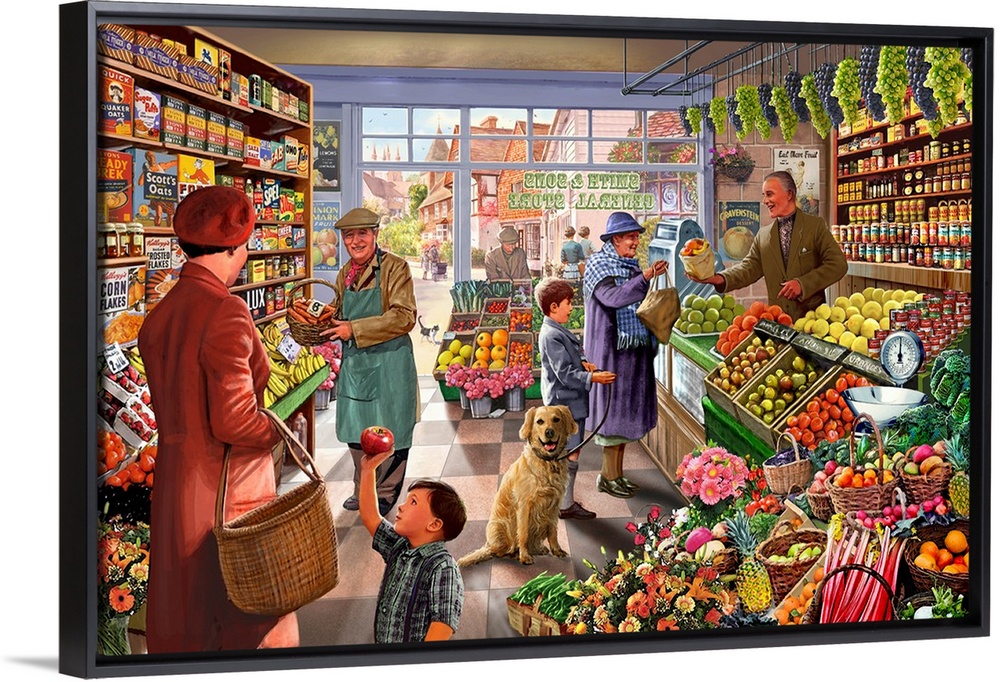 <p>Scene in a greengrocer's shop in 1950's.</p>