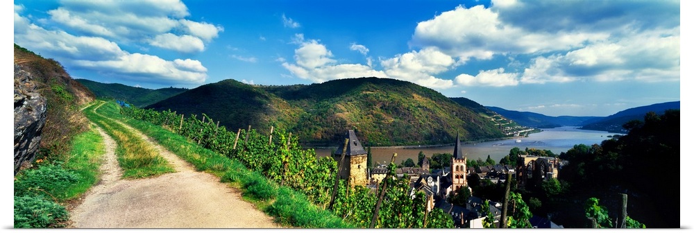 <p>Village of bacharach along rhine river, mainz-bingen, rhineland-palatinate, germany.</p>