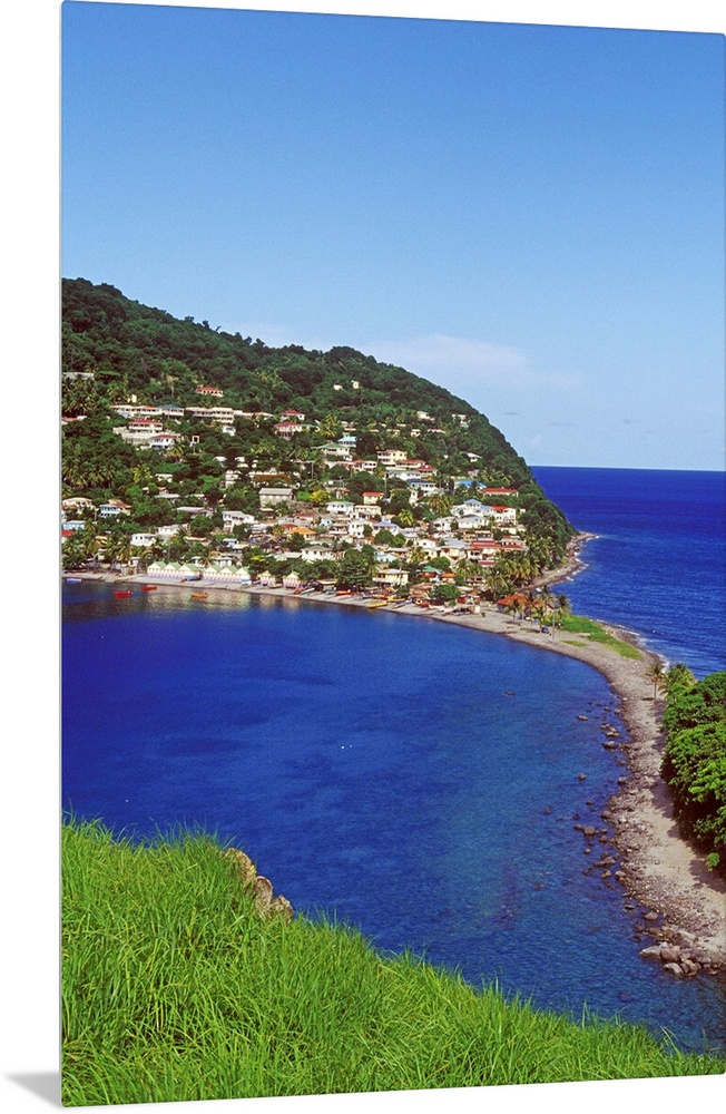 <p>Village of Scotts Head, with views of Soufriere Bay and the Martinique Channel, Southern Coast, Dominica, Caribbean.</p>