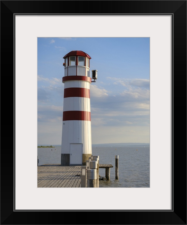 <p>Village Podersdorf and the shore of Lake Neusiedl. The lighthouse at the harbor, the landmark of Podersdorf. Part of the UNESCO World Heritage Site. Austria, Burgenland.</p>