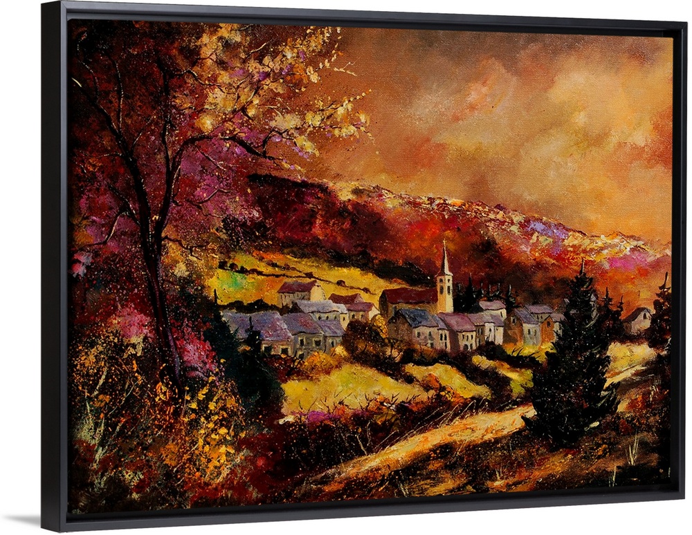 <p>A horizontal painting of the village of Vencimont in Belgium.</p>