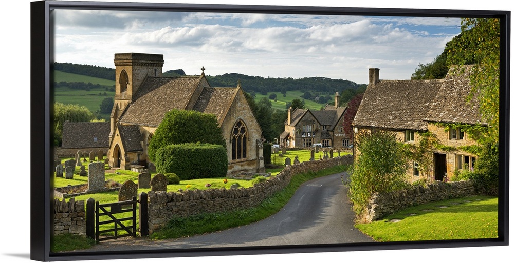 <p>A quaint countryside village with cottages and stone fences.</p>