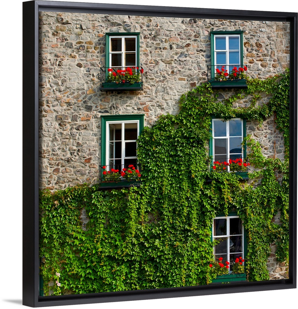 <p>Vine covered stone house and windows, Quebec City, Quebec, Canada</p>
