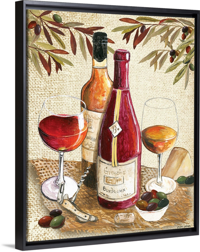 <p>Mediterannean flavor is capture in this wine and olive scene.</p>