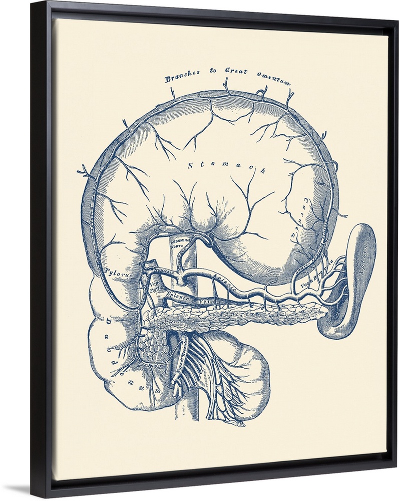 <p>Vintage anatomy print features a diagram of the human stomach.</p>